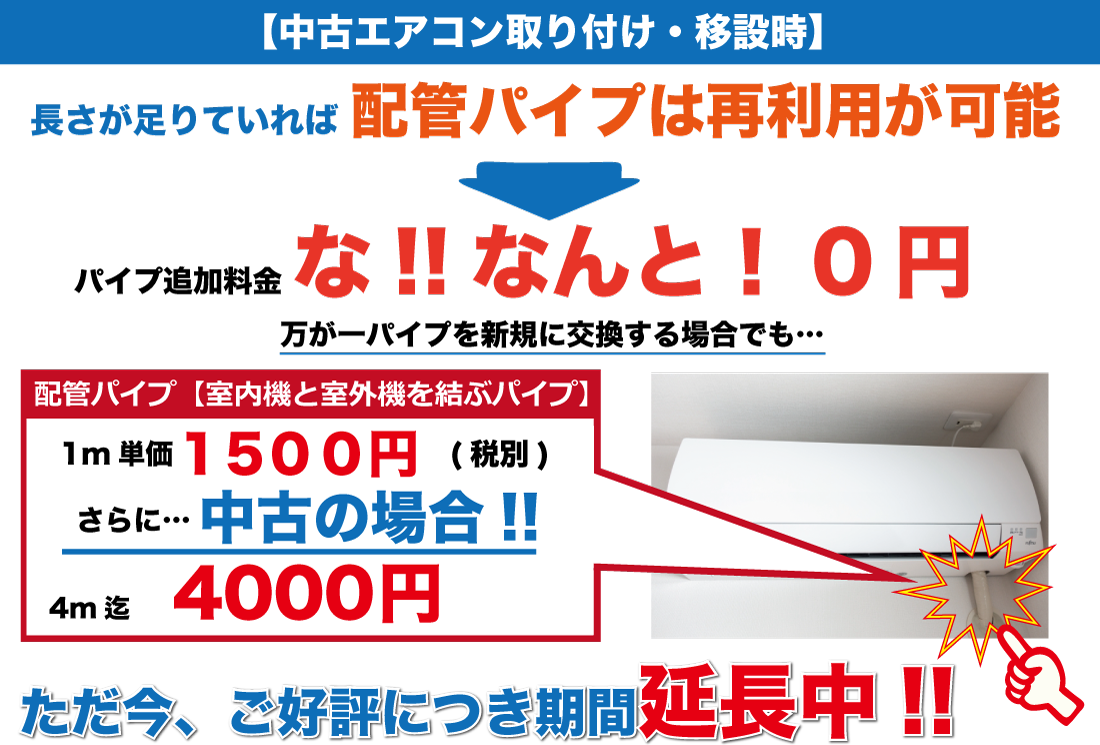 当社で販売する中古エアコンは全て標準取付工事込み |